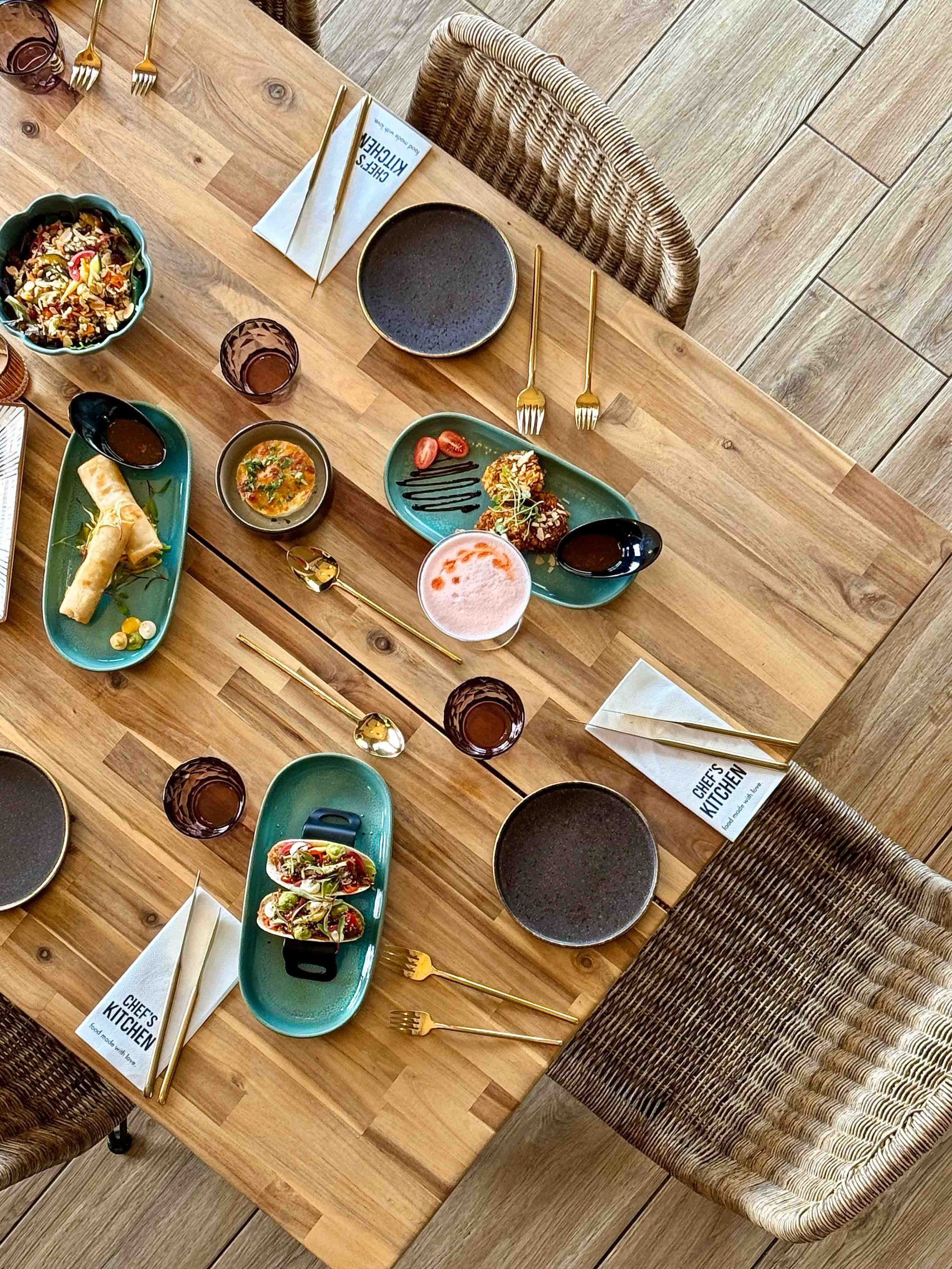At Chef’s Kitchen, we offer an eclectic blend of global flavors through our meticulously crafted small plates, perfect for tasting and sharing. Inspired by the culinary treasures discovered during our worldwide adventures, our menu features a delightful mix of authentic street foods and contemporary gourmet creations. We welcome you to join us and embark on a culinary journey, hoping you’ll leave with unforgettable food memories to savor long after your visit.